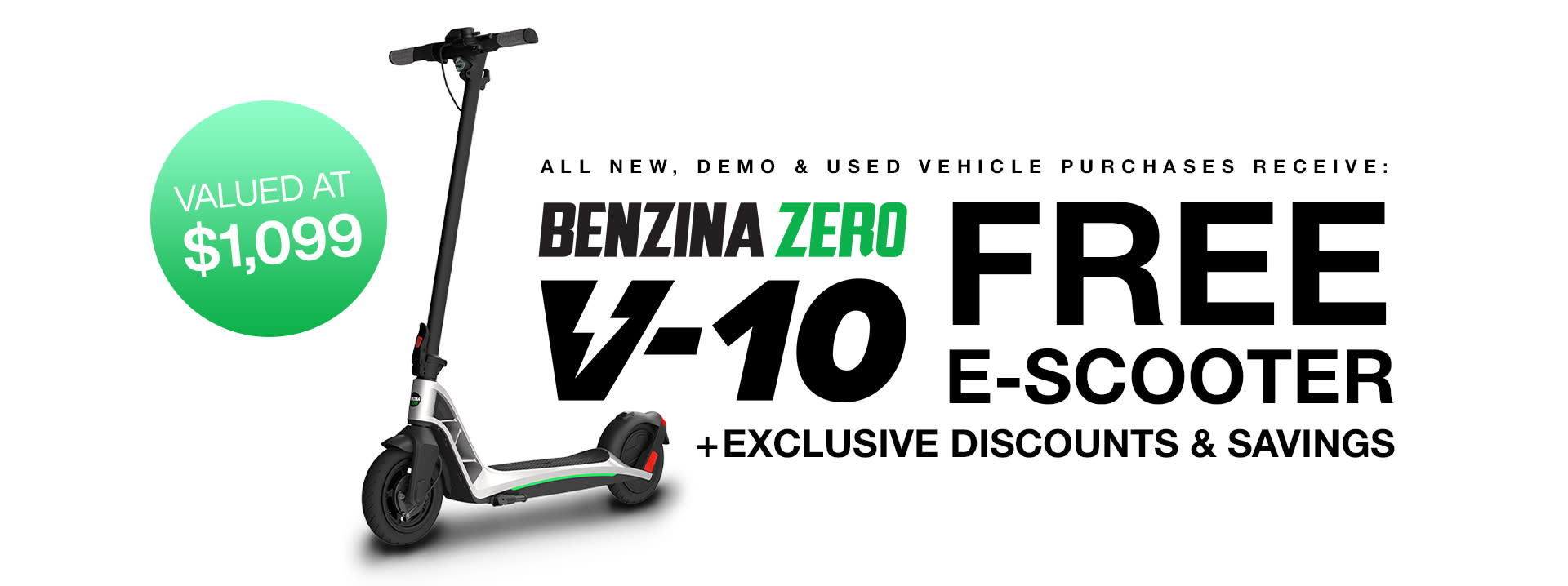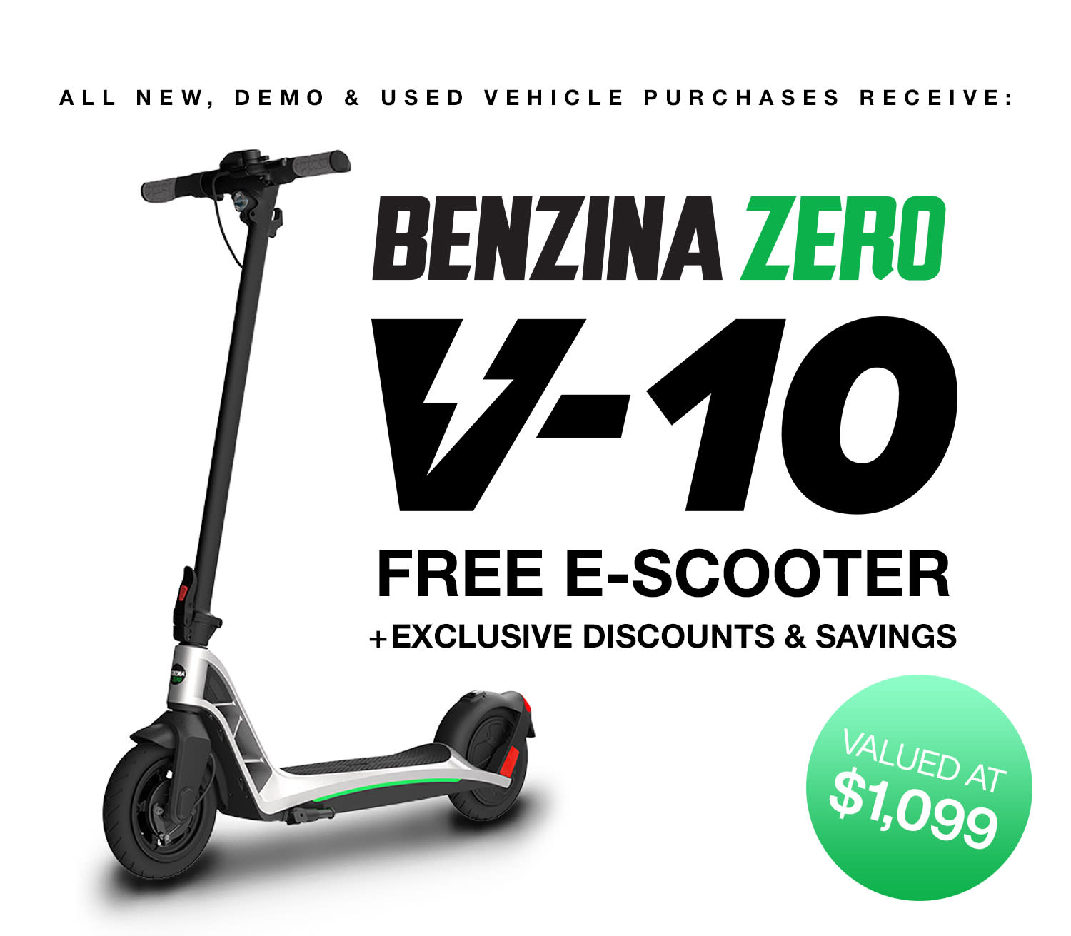 *Terms & Conditions Apply. Bonus Offer valid on select stock only. Westpoint Autos Bonus Offer is 1 x Benzina Zero V-10 Electric Scooter valued at $1099 inc. GST. Bonus Offer is applicable on in-stock vehicles only, purchased between 27/11/2024 - 30/11/2024 unless extended or varied. Excludes fleet and government buyers. Offer cannot be redeemed for cash, returned for a refund, or transferred. Bonus Offer will be provided during or after vehicle delivery, no later than 31 December 2024. Bonus Offer will be issued to the individual stated on the vehicle contract if nominated. Customer details on this waiver must match what is supplied on the vehicle contract. Westpoint Autos reserves the right to amend these Terms & Conditions at any time. Offer may be extended or varied at any time.
